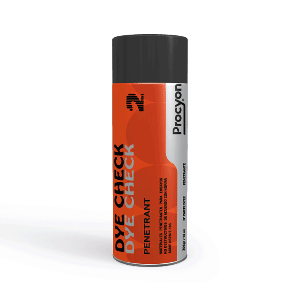 PROCYON® DYE CHECK PENETRANT (2) Tinte penetrante rojo de gran capilaridad.; Tinte penetrante rojo de gran capilaridad. Penetra incluso en micro grietas.; Evaporación lenta.; Libre de cloruros y sulfuros.; Aplicar después de limpiar la superficie con PROCYON DYE CHECK CLEANER.